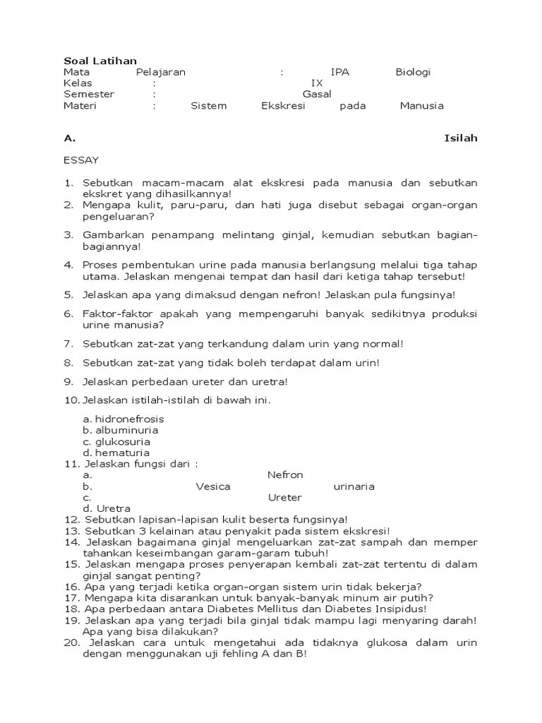 Bab / materi soal = soal ipa online kelas 9 smp bab 1 sistem ekskresi . Kali ini bimbel brilian menyajikan latihan soal berbentuk online. Artikel ini adalah rangkaian latihan soal dan pembahasan penilaian tengah semester. Hati, mengeluarkan bilirubin yang merupakan bahan sisa dari pemecahan sel darah merah yang sudah . Kontributor setiap konten di bank soal bertanggungjawab sepenuhnya terhadap isi dan kebenaran materi.